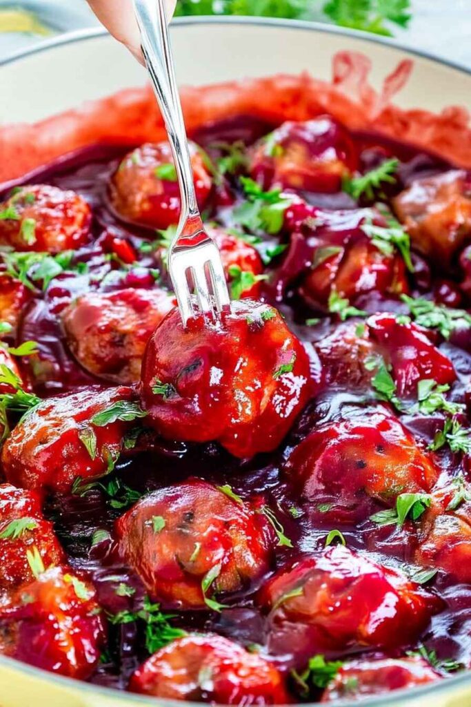 - Can I prep Cranberry Meatballs ahead of time? Yes—you can shape the meatballs, cover, and refrigerate up to 24 hours before cooking.