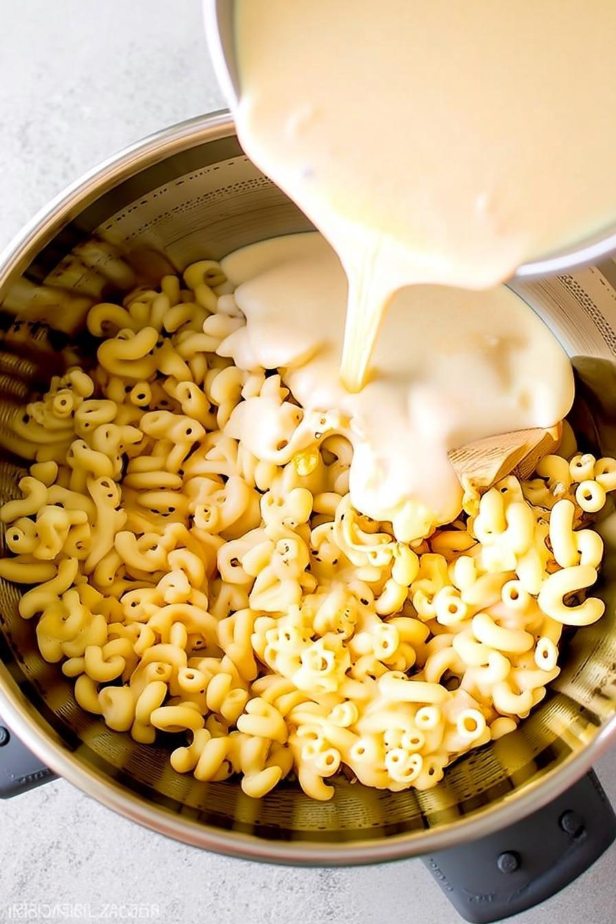 - Boil 1 lb elbow macaroni in salted water until al dente (about 7–8 minutes), then drain and set aside.